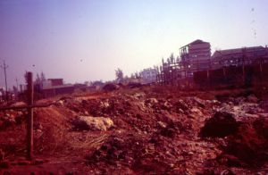 Leper rehabilitation colony, Rajanand Gaon, Madhya Pradesh. In the picture . Only a hoarding with three people standing by it