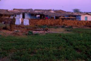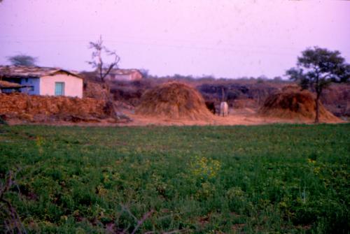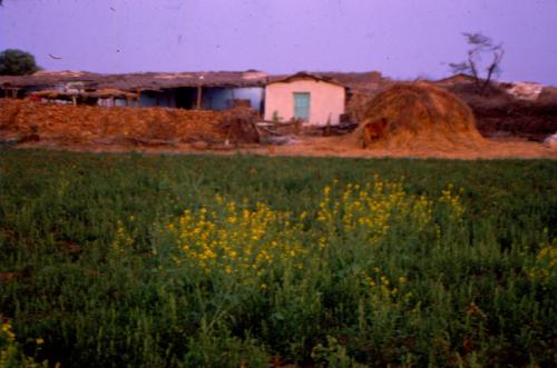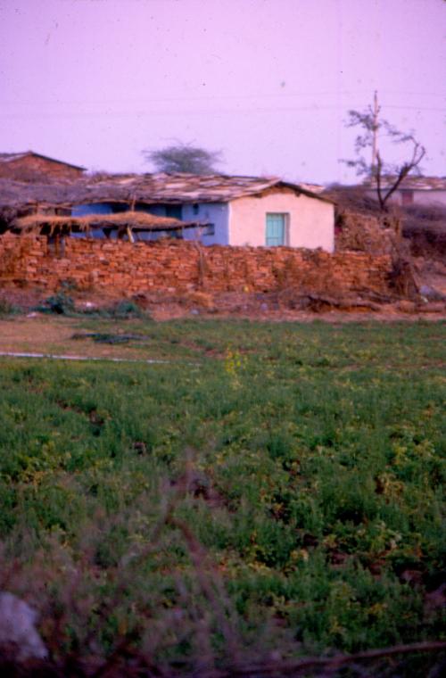 Houses with green fields for cultivation